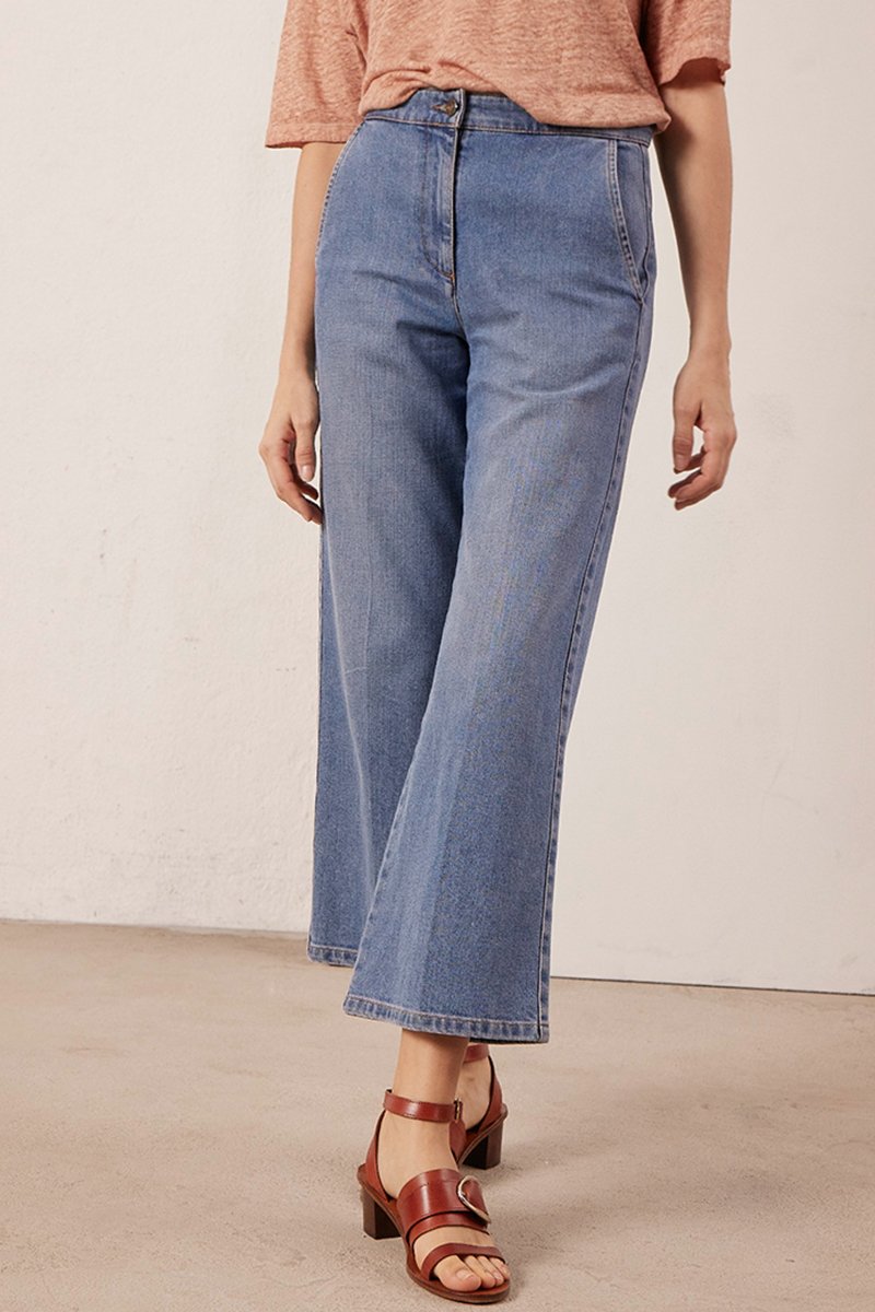 Calças de ganga flare 7/8 de cintura subida Nadya - Índigo
