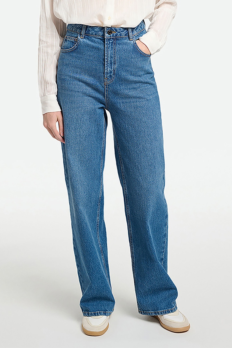 Calças de ganga direitas.