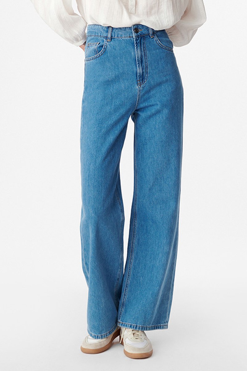 Calças de ganga direitas.