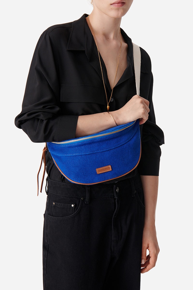 Mala a tiracolo de linho - Azul