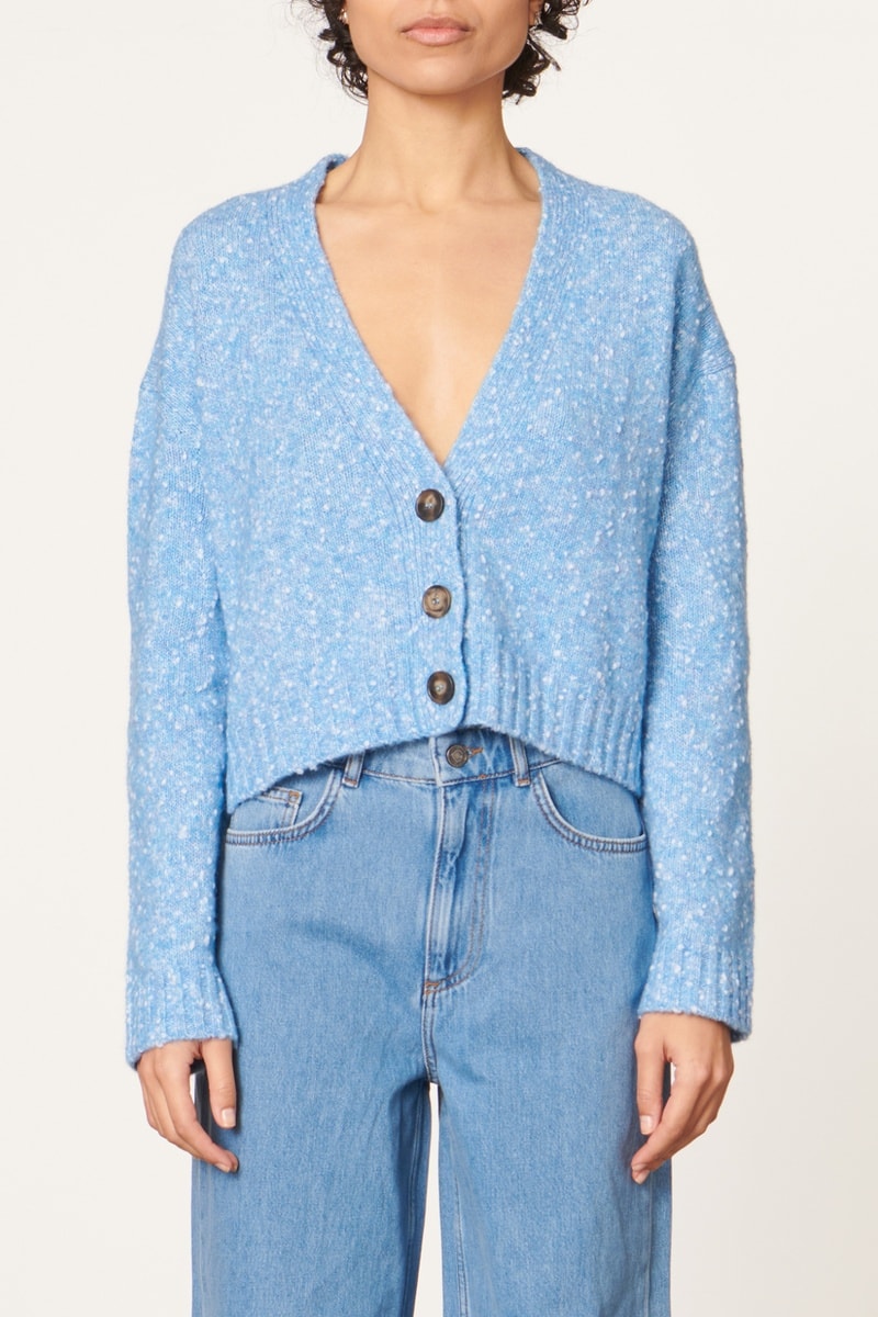 Casaco de malha oversize em lã merino e alpaca - Azul-claro