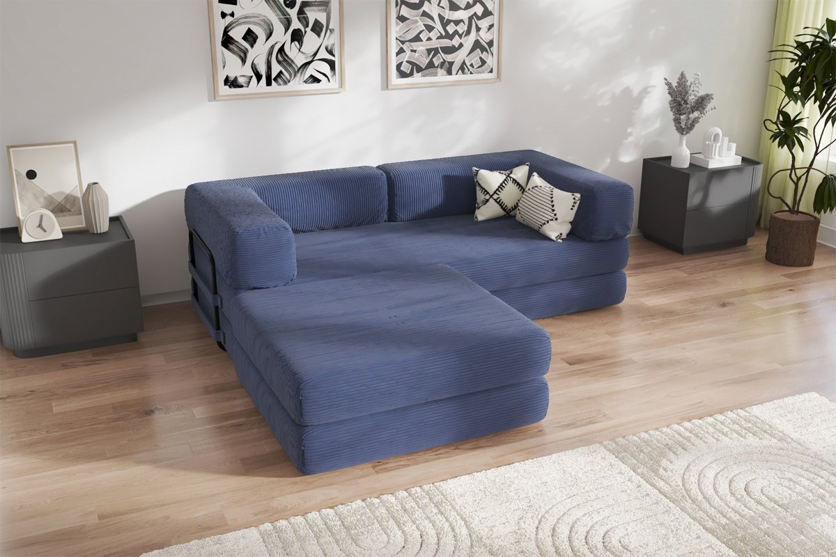 Sofá convertível com pufe Smart - Azul-marinho - 2 lugares - Em tecido veludo