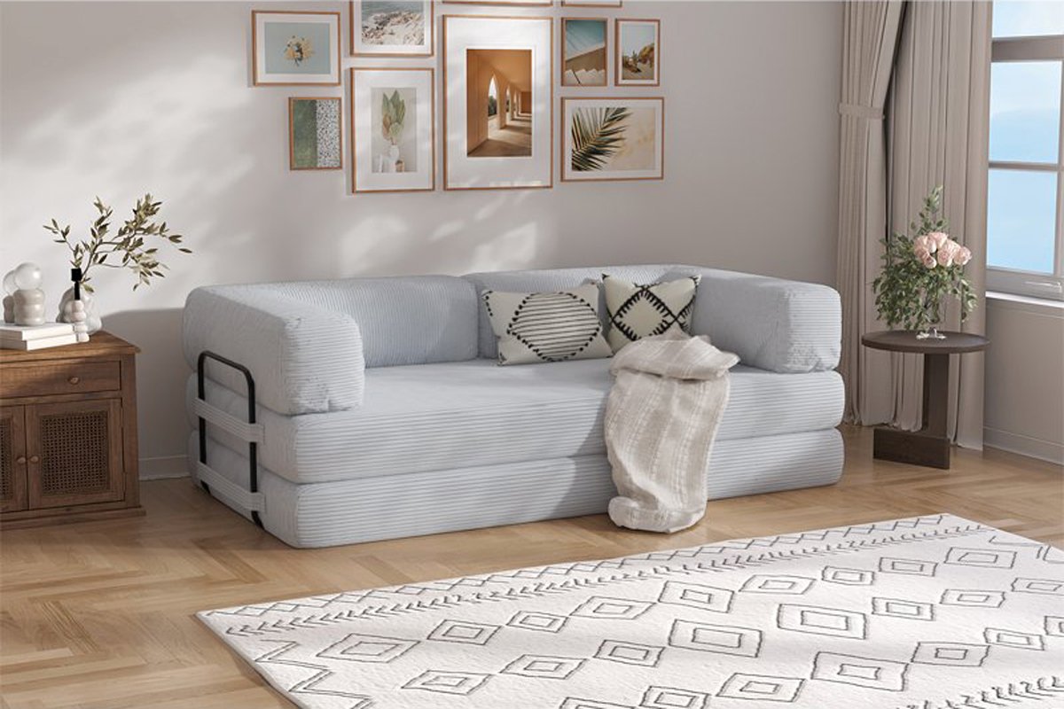 Conjunto sofá convertível Smart e capa - Cinzento - 2 lugares - Tecido veludo