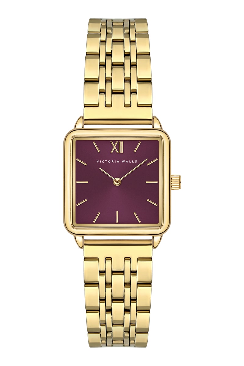 Relógio de quartzo em aço - Dourado e bordô - Victoria Walls