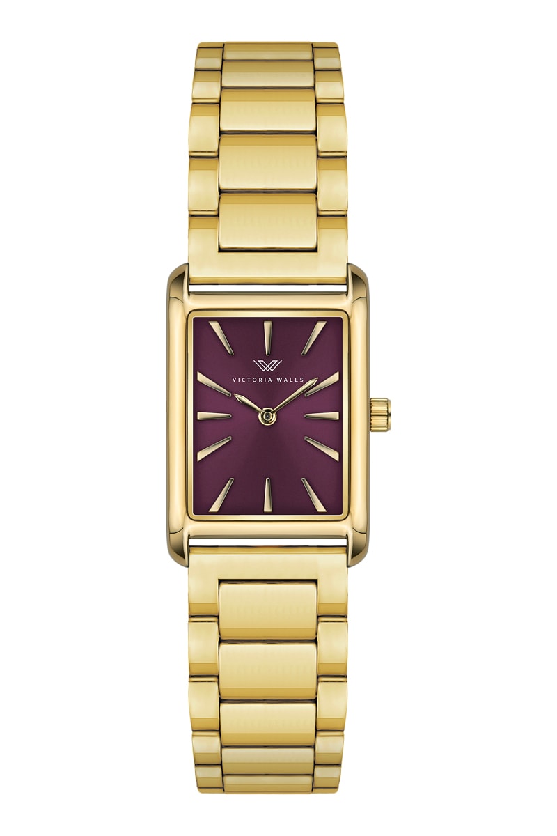Relógio de quartzo em aço - Dourado e bordô - Victoria Walls