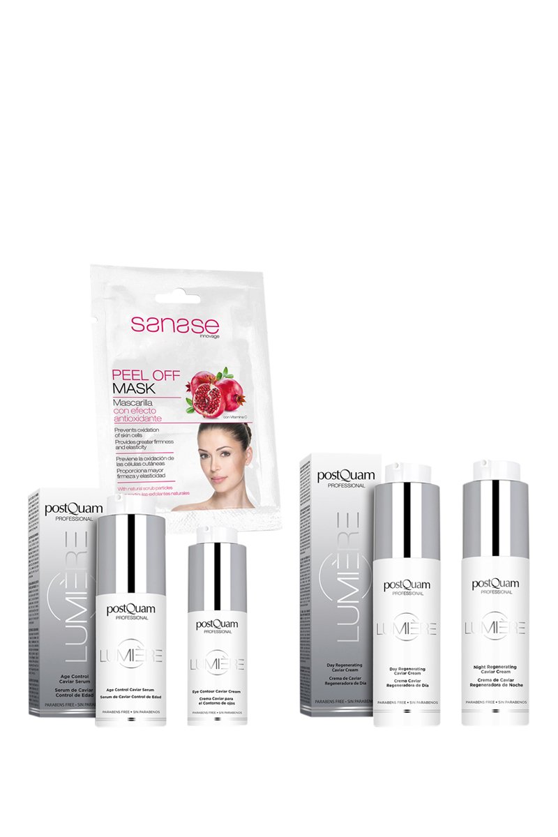 A associação de extrato de caviar e de flores de trevo vermelho contribui para um efeito anti-idade, combatendo os sinais de envelhecimento.