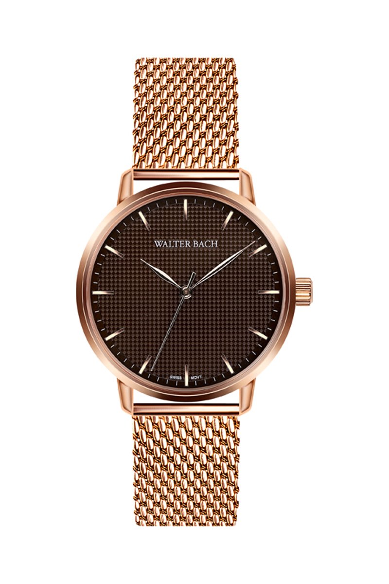 Relógio de quartzo em aço - Dourado rosa e castanho - Walter Bach