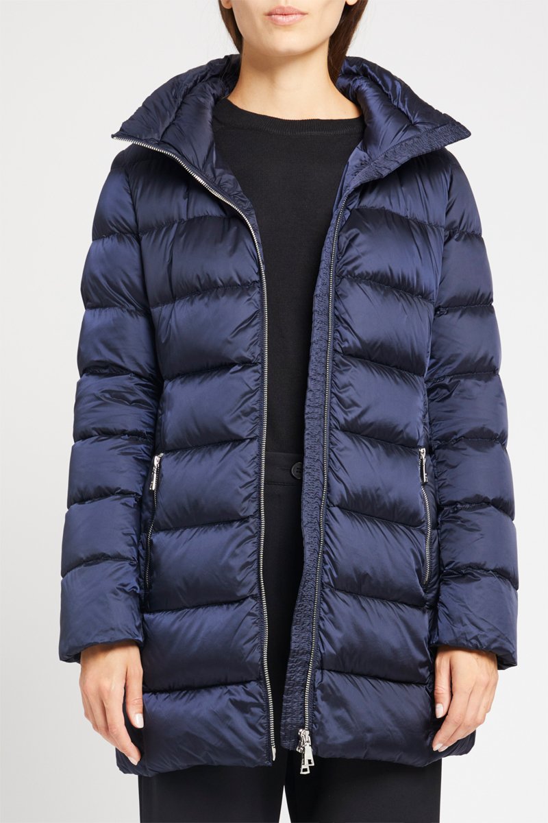 Blusão midi com capuz.