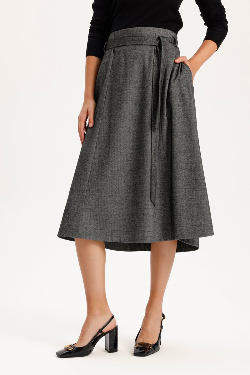 Saia midi cintura subida - Antracite mesclado