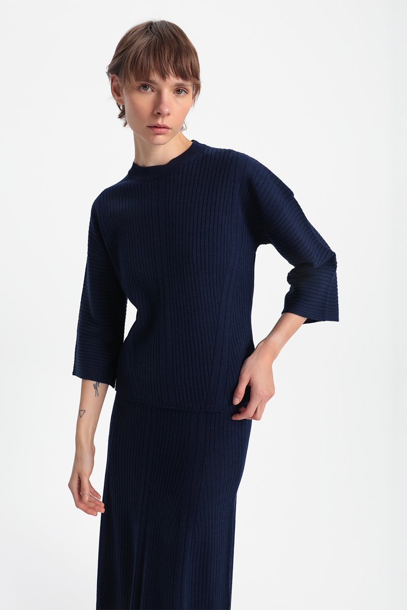Camisola de malha canelada.