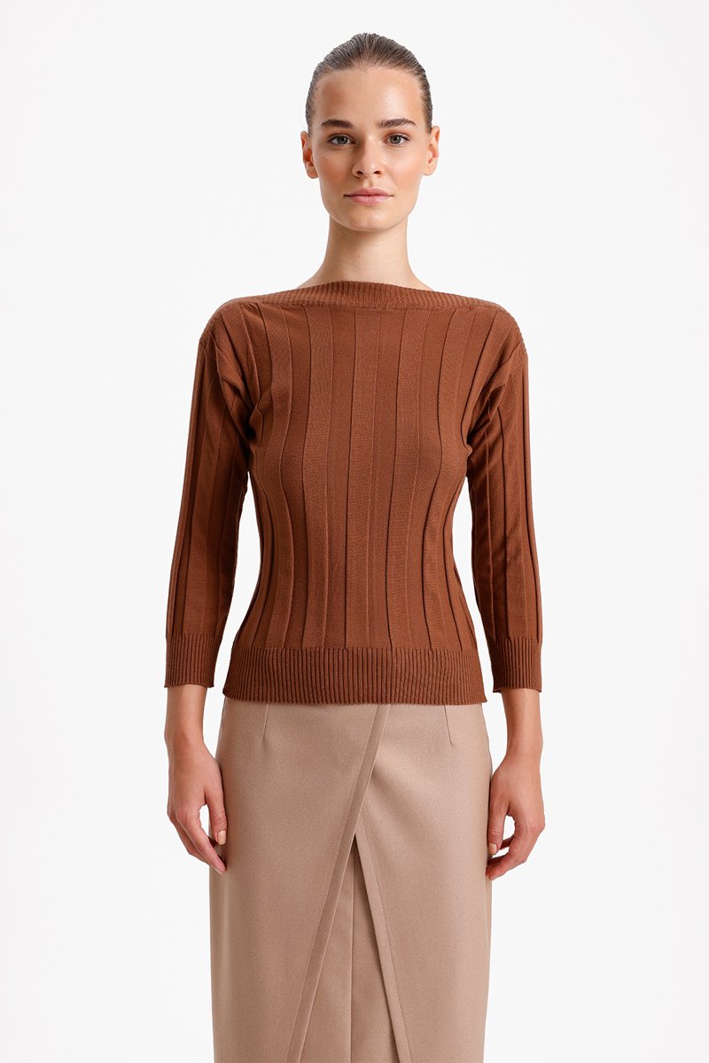 O modelo mede 1,79 m e veste o artigo no tamanho S.