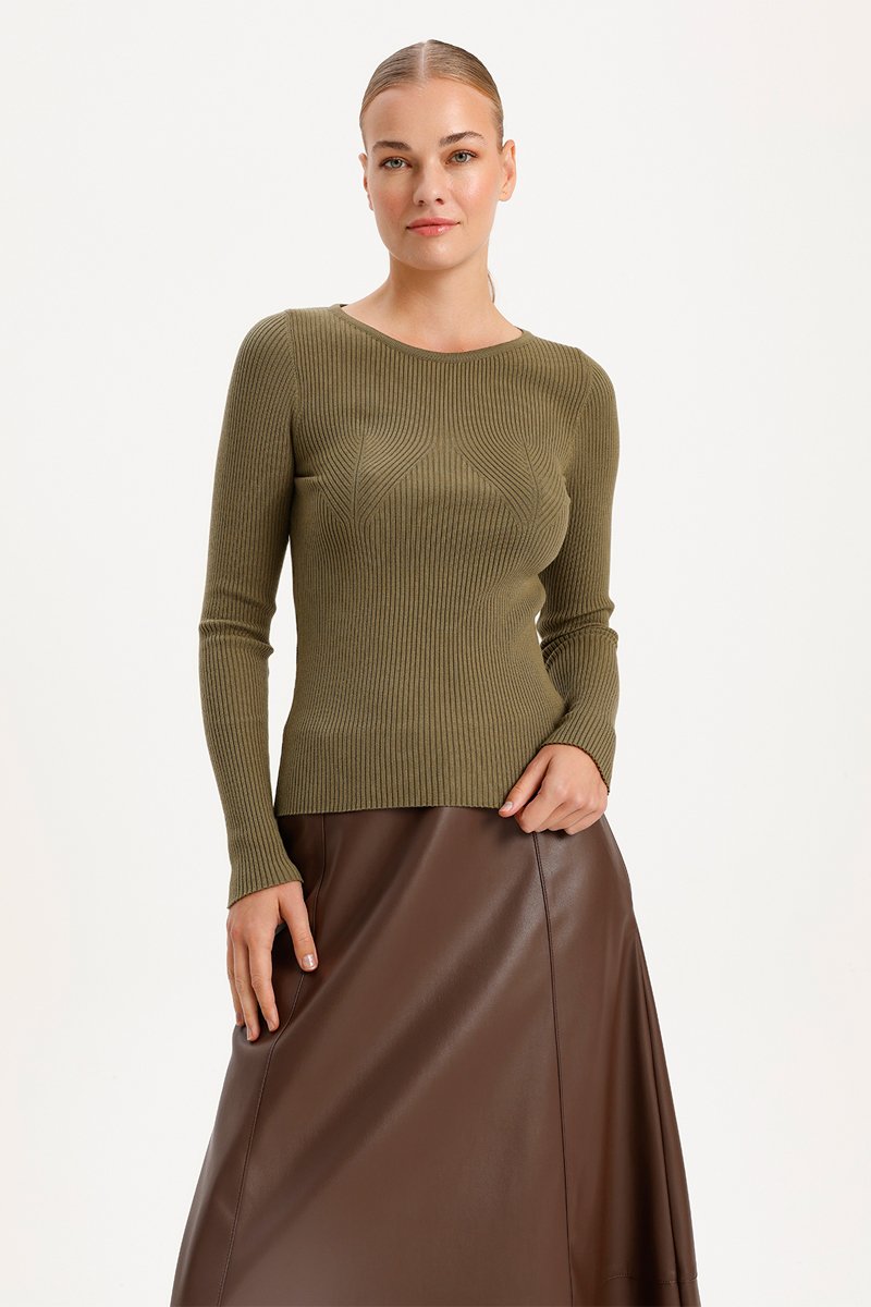 O modelo mede 1,79 m e veste o artigo no tamanho S.