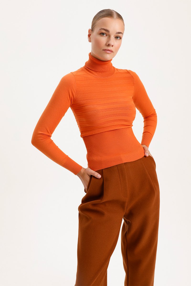 O modelo mede 1,79 m e veste o artigo no tamanho S.