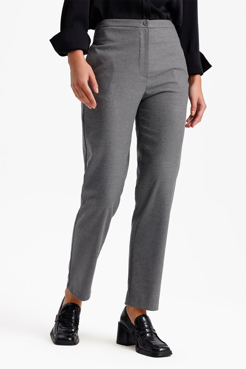 Calças corte cenoura cintura subida - Cinzento mesclado