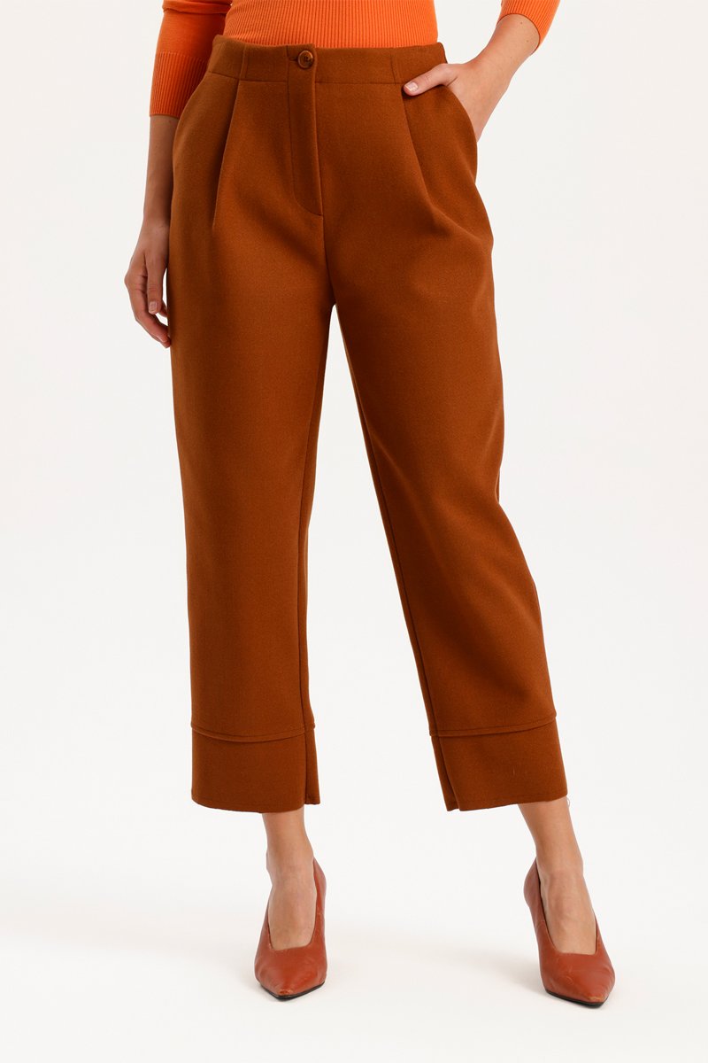 Calças corte cenoura cintura subida - Castanho