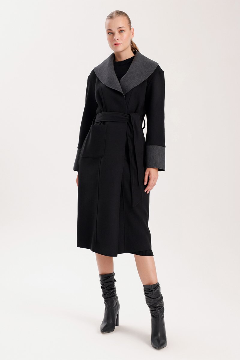 O modelo mede 1,79 m e veste o artigo no tamanho 36.