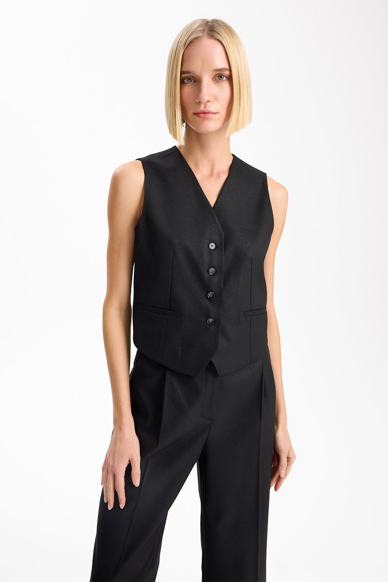 Composição: 61% poliéster, 33% viscose e 6% elastano