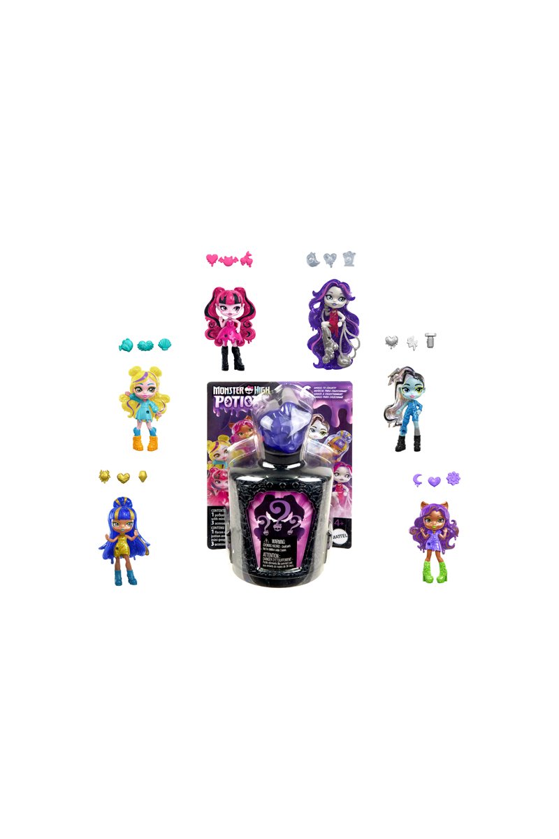 Ofereça uma boneca terrivelmente adorável com poções Monster High! Basta preparar a poção para uma surpresa assustadora. Cada frasco é fornecido com uma figura de 8 cm de um dos personagens favoritos dos fãs de Monster High, assim como 3 talismãs «mágicos» para um jogo personalizável! Prepare a poção em 4 etapas: verter água com os talismãs dentro do frasco, agite-o e observe a poção que toma forma, verter a mistura, e depois revelar o boneco.