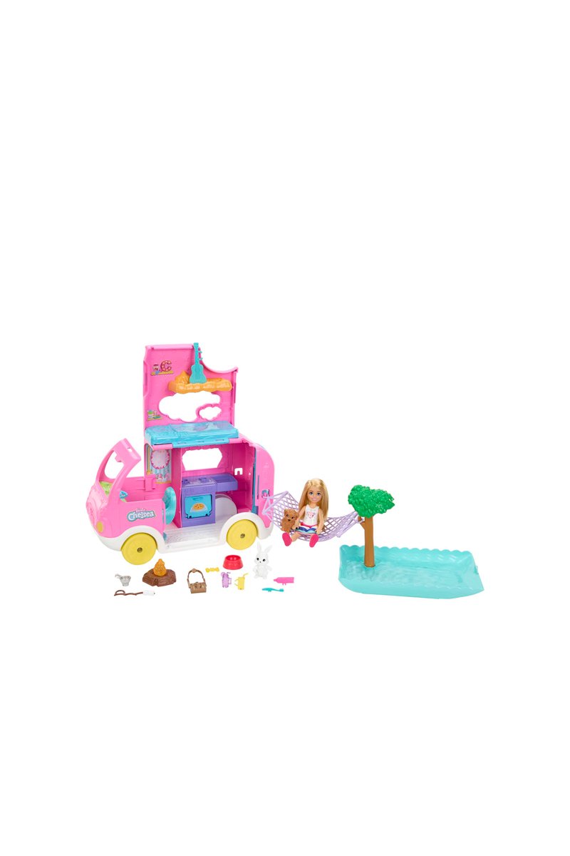 Com o Playset 2 em 1 Barbie® Chelsea Campervan, deixe sua imaginação levá-lo para a estrada com a boneca Chelsea e seus dois animais de estimação!