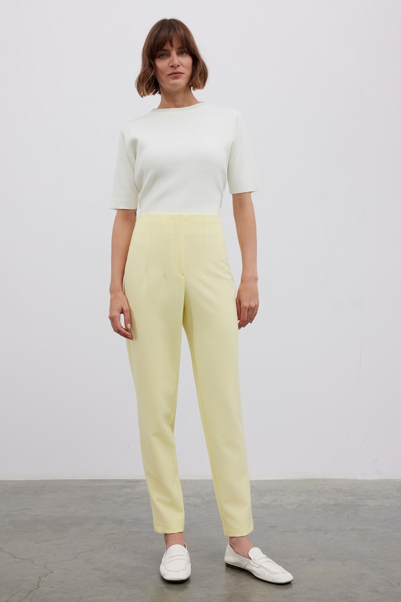 Calças slim cintura subida - Amarelo