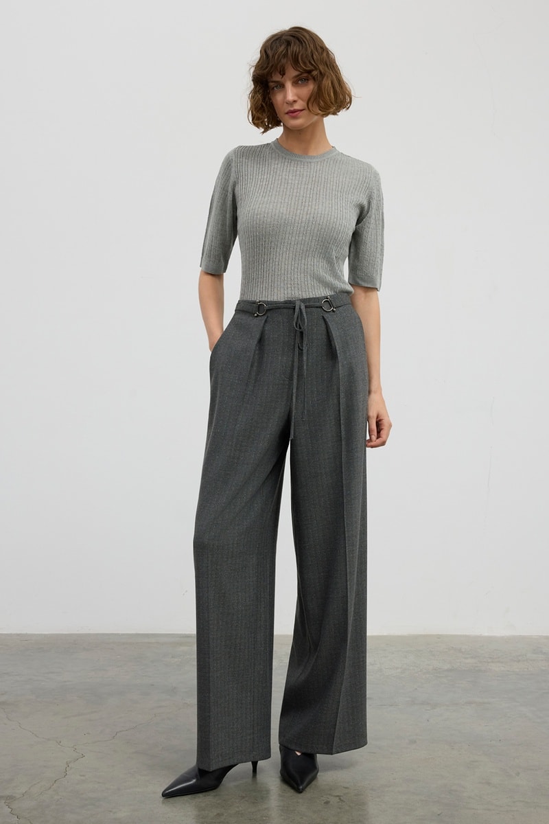 Composição: 63% poliéster, 34% viscose e 3% elastano