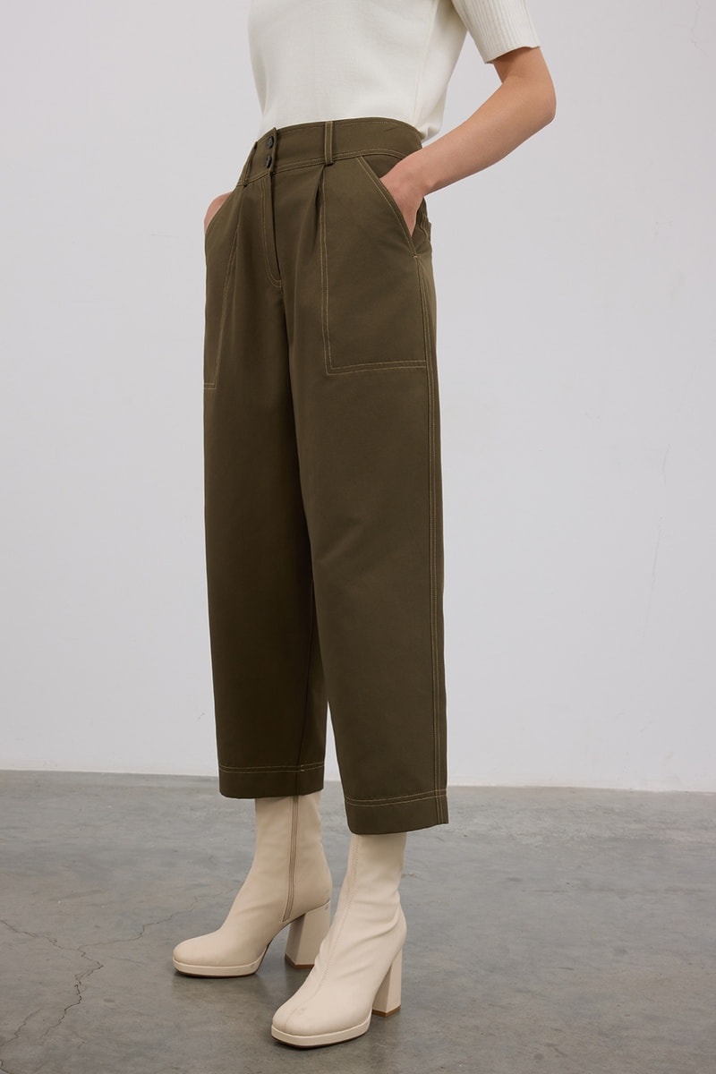 Calças tapered 7/8 cintura subida - Verde-azeitona