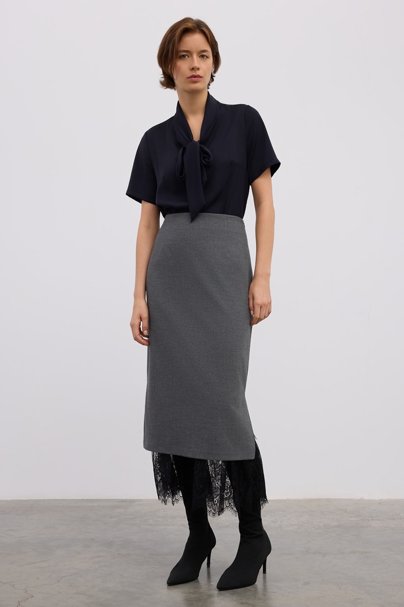 Saia midi - Cinzento-escuro mesclado