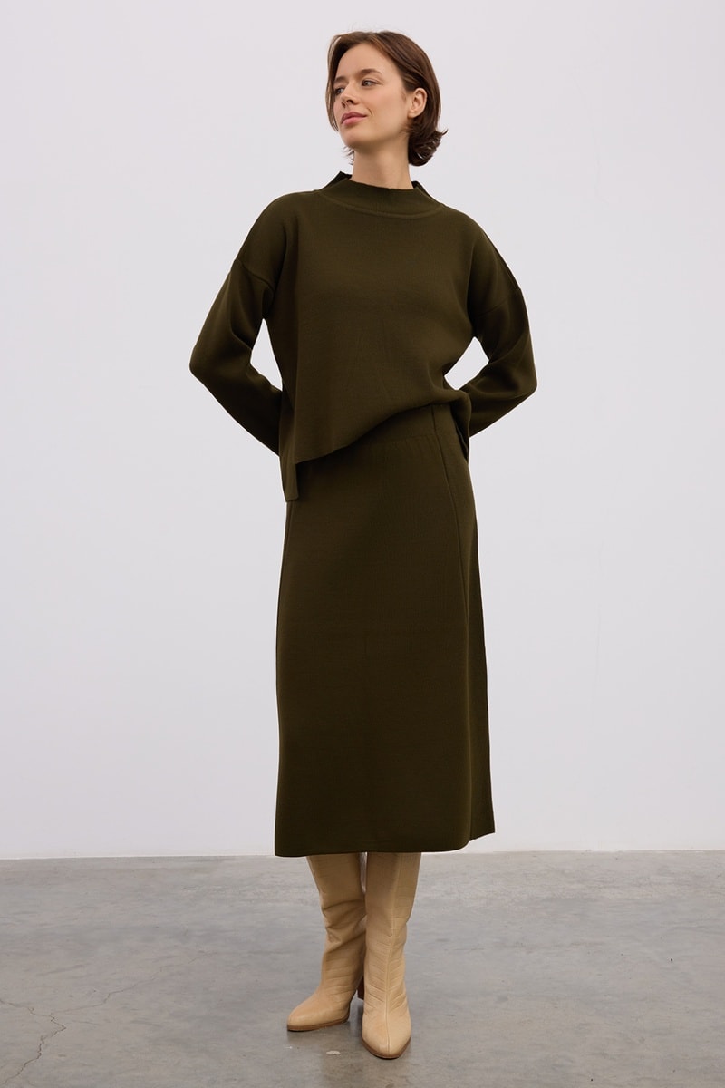Saia midi cintura subida - Verde-azeitona