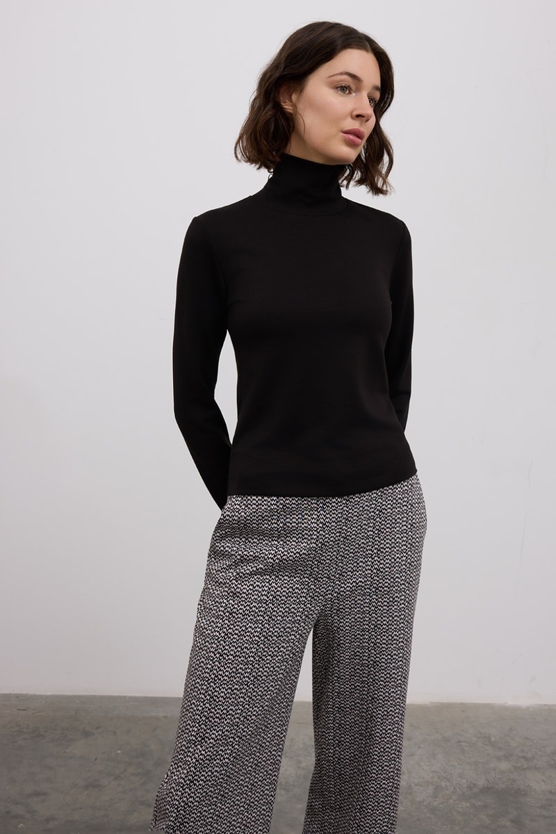 Composição: 48% poliéster, 47% viscose e 5% elastano