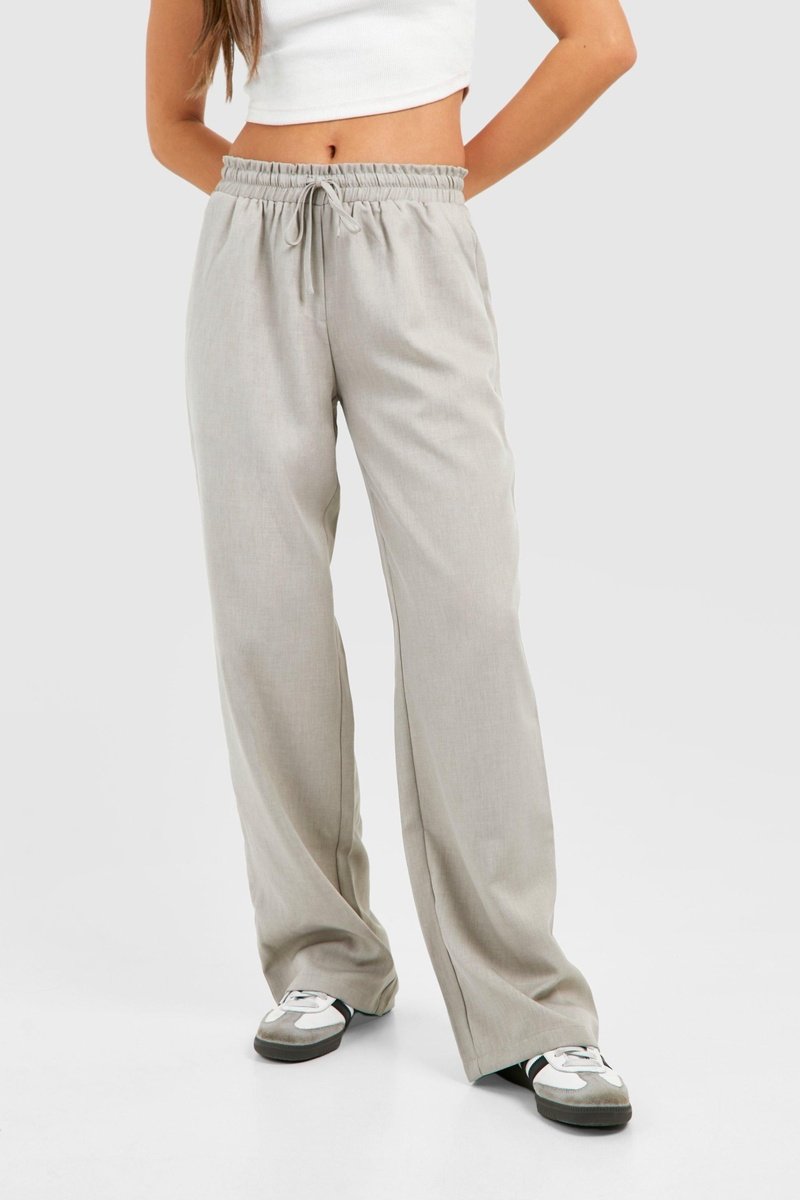 Cintura elástica com atilhos de ajuste.