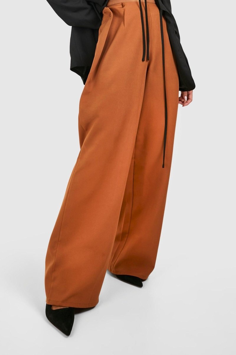 Calças wide legs cintura subida - Castanho