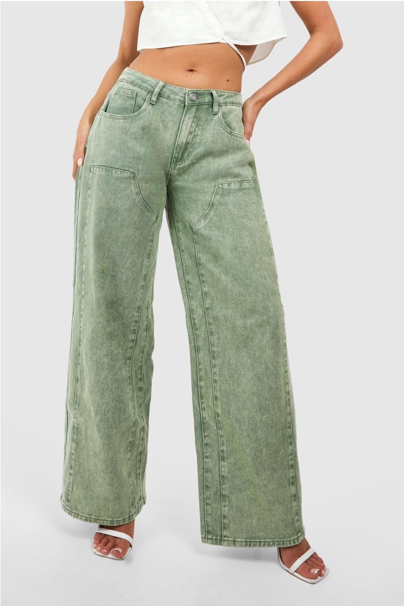 Calças de ganga direitas - Caqui