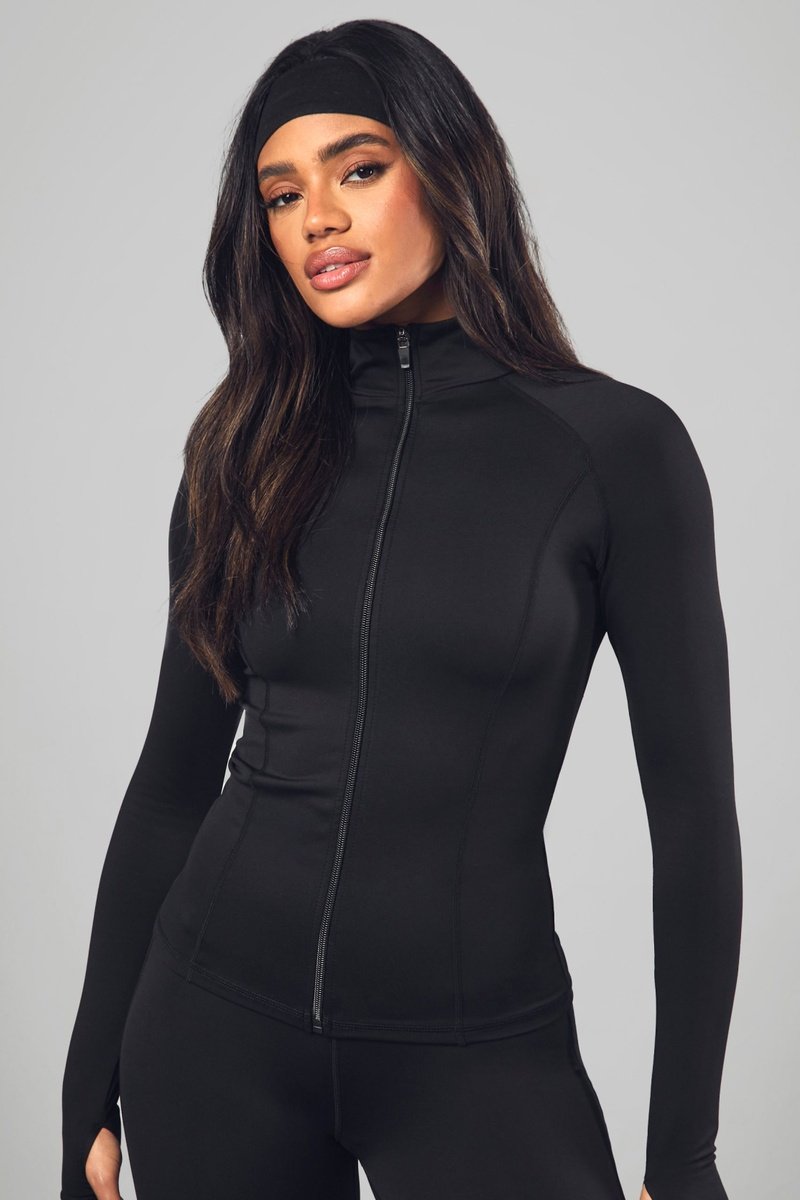 Casaco de malha com mangas compridas e abertura para o polegar.