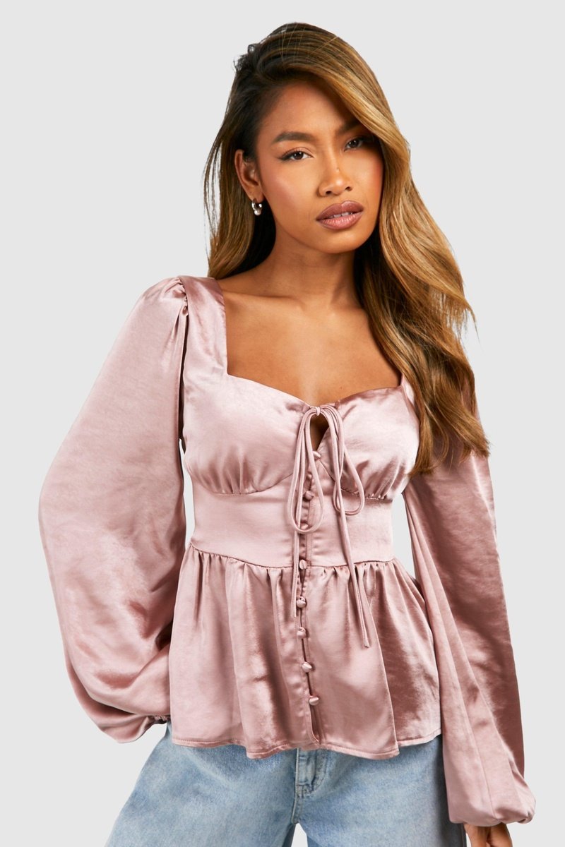 Gola quadrada com atilhos de atar.