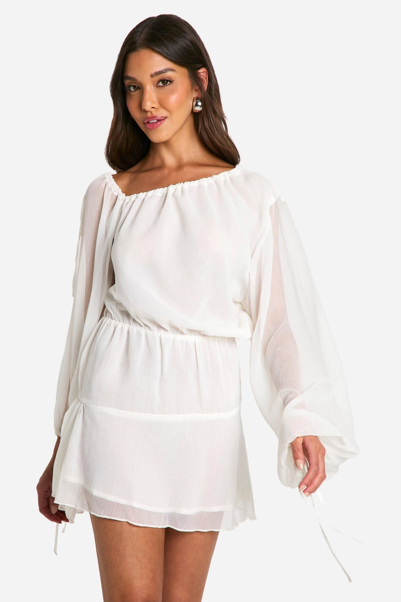 Vestido estilo patinadora de mangas compridas pagode com atilhos de ajuste.