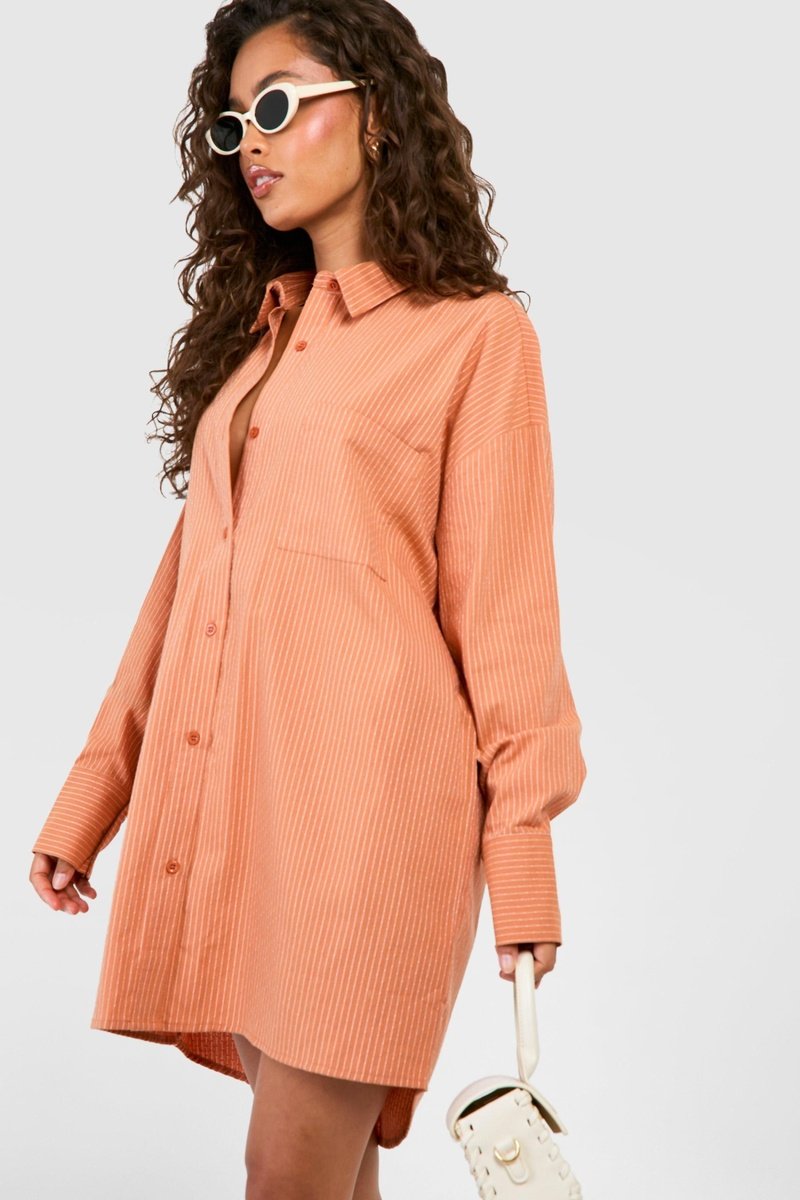Vestido-camisa oversize de mangas compridas abotoáveis.