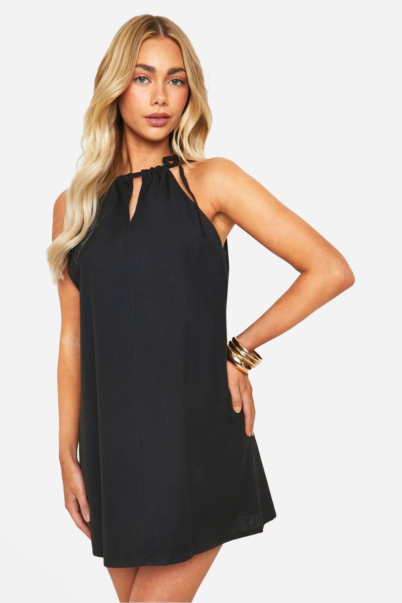 Vestido curto sem mangas.