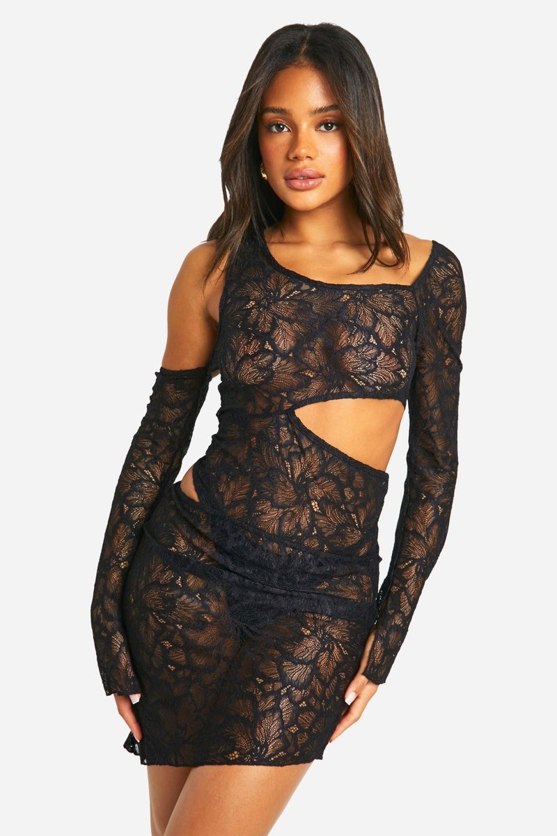 Vestido curto de mangas compridas.