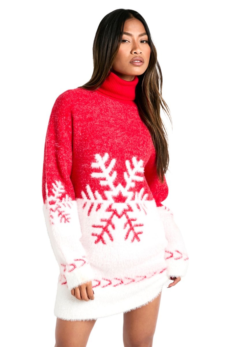 Padrão flocos de neve nas mangas e à frente.