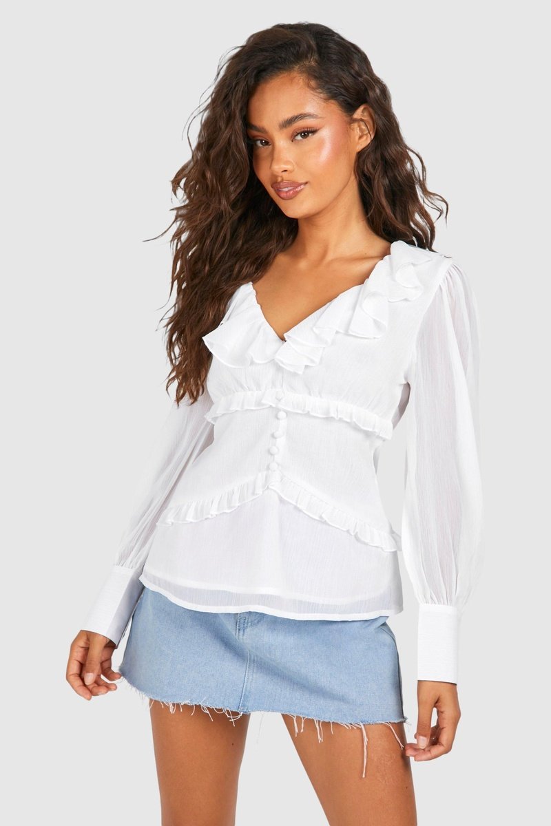 Folhos no decote e à frente.