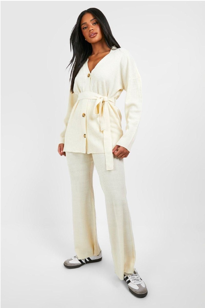 Casaco de malha e calças wide legs - Cru