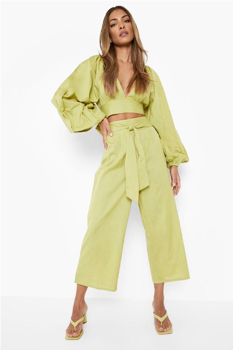 Crop top e calças wide legs - Verde