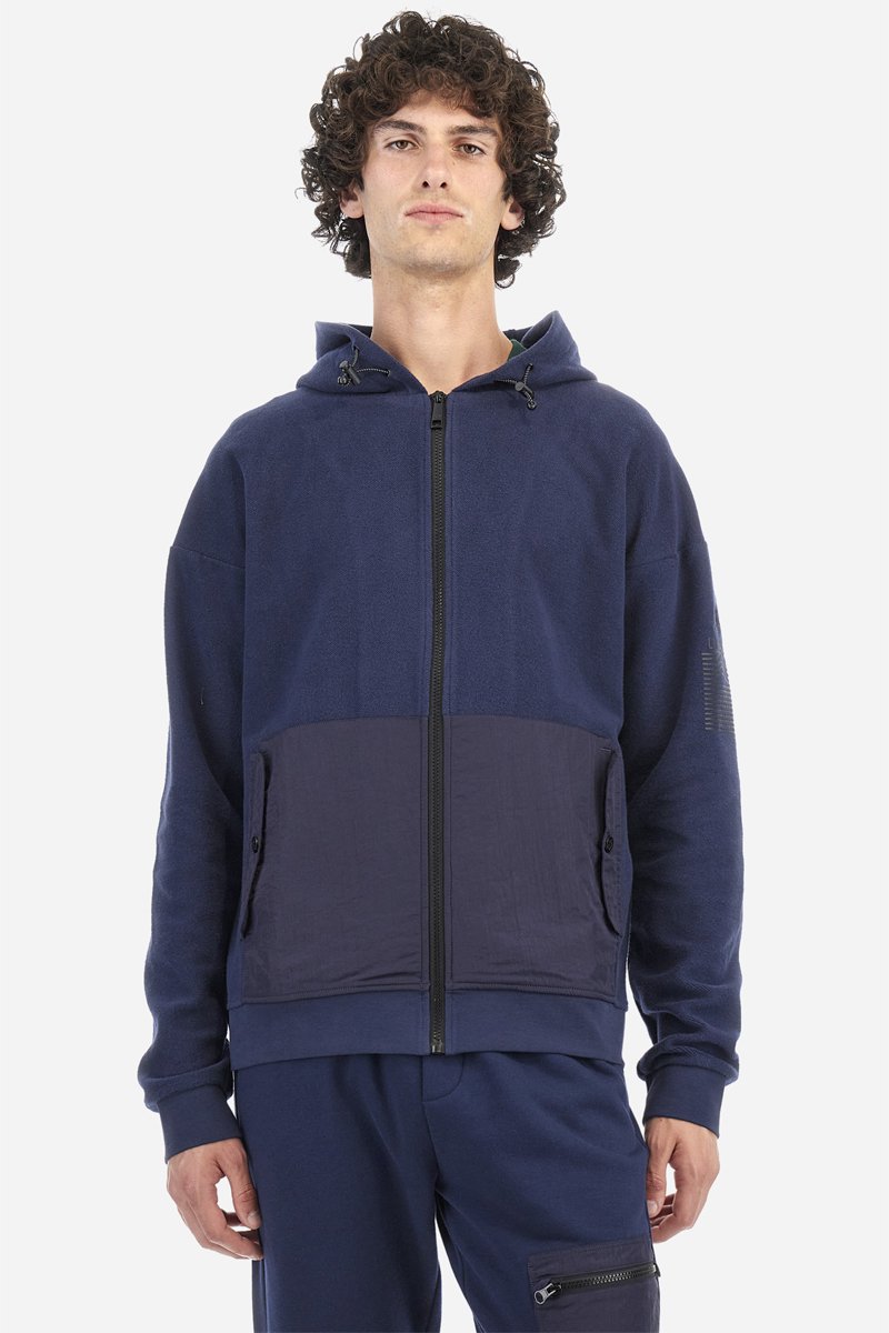 Sweat reversível regular com capuz e atilhos de ajuste.