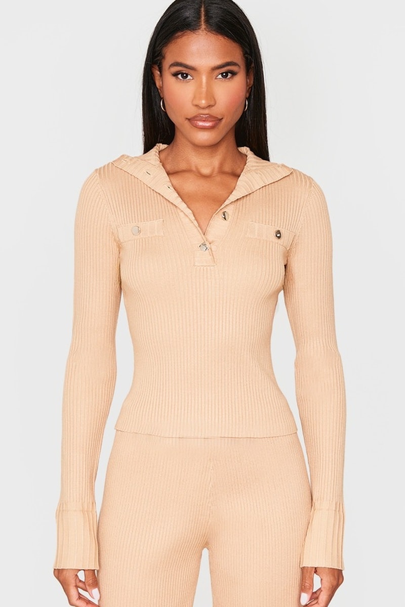 Camisola em malha canelada.