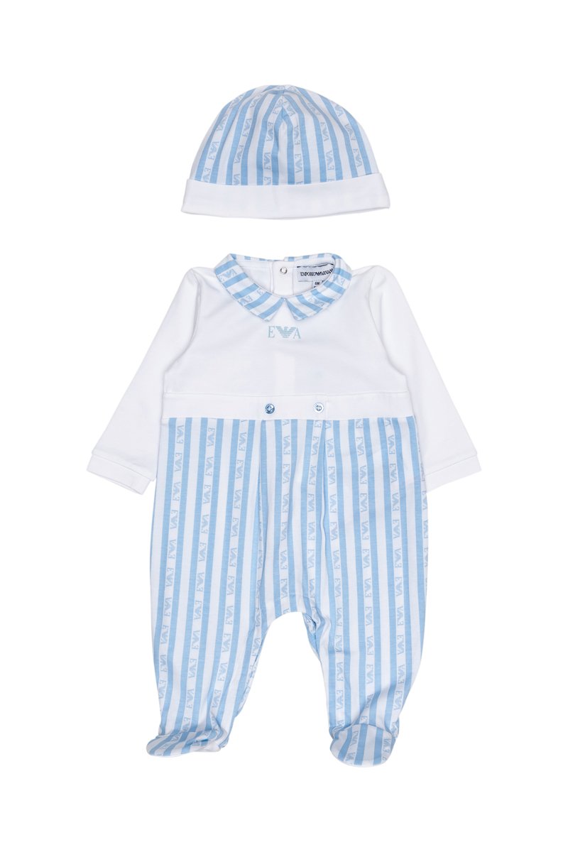 Gorro e babygro - Branco e azul-celeste