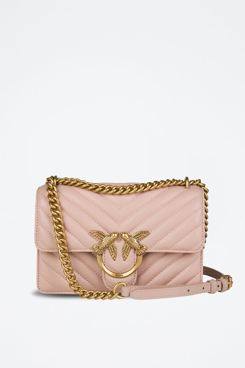 Mala a tiracolo em couro de carneiro Love One Mini - Rosa-maquilhagem
