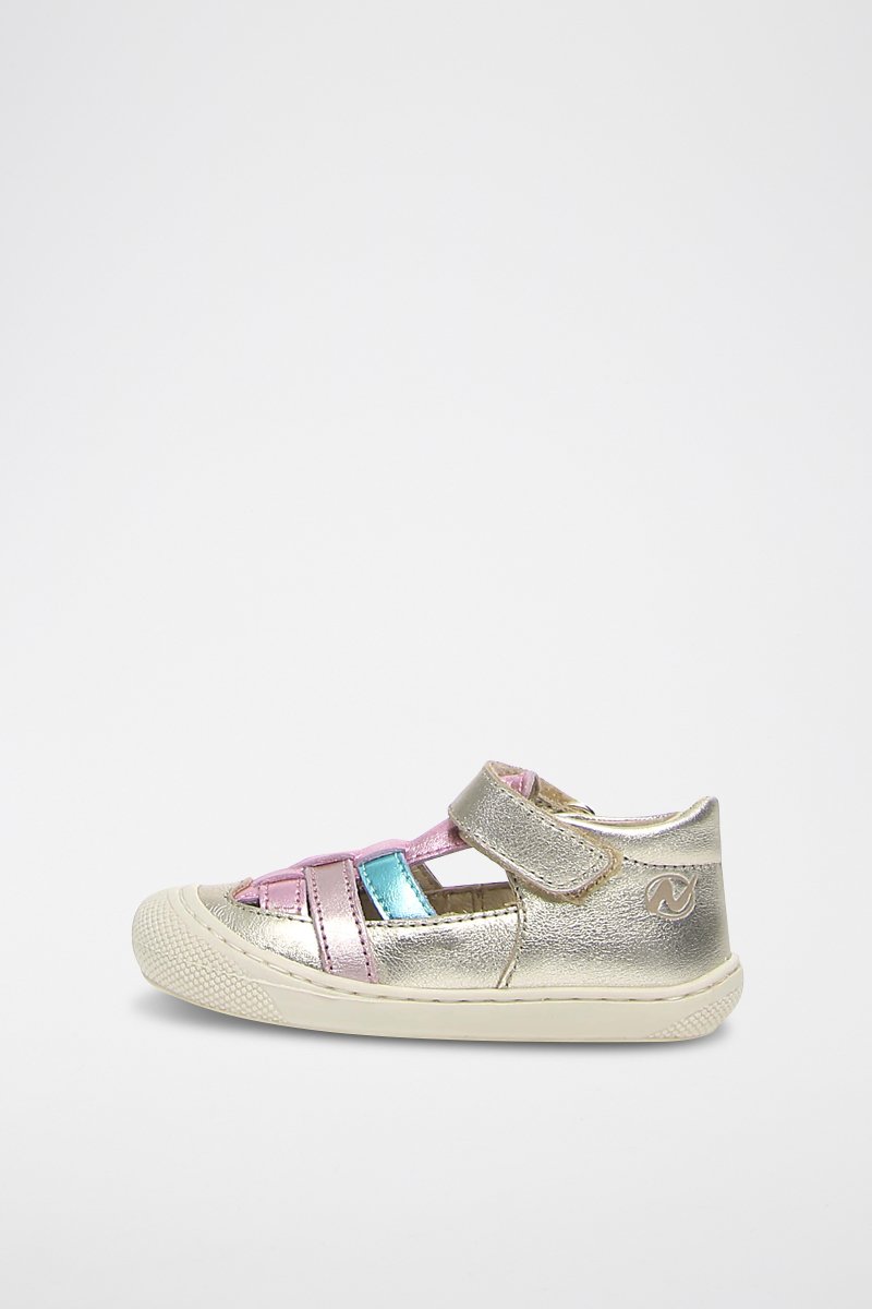 Sandálias em couro metalizado.