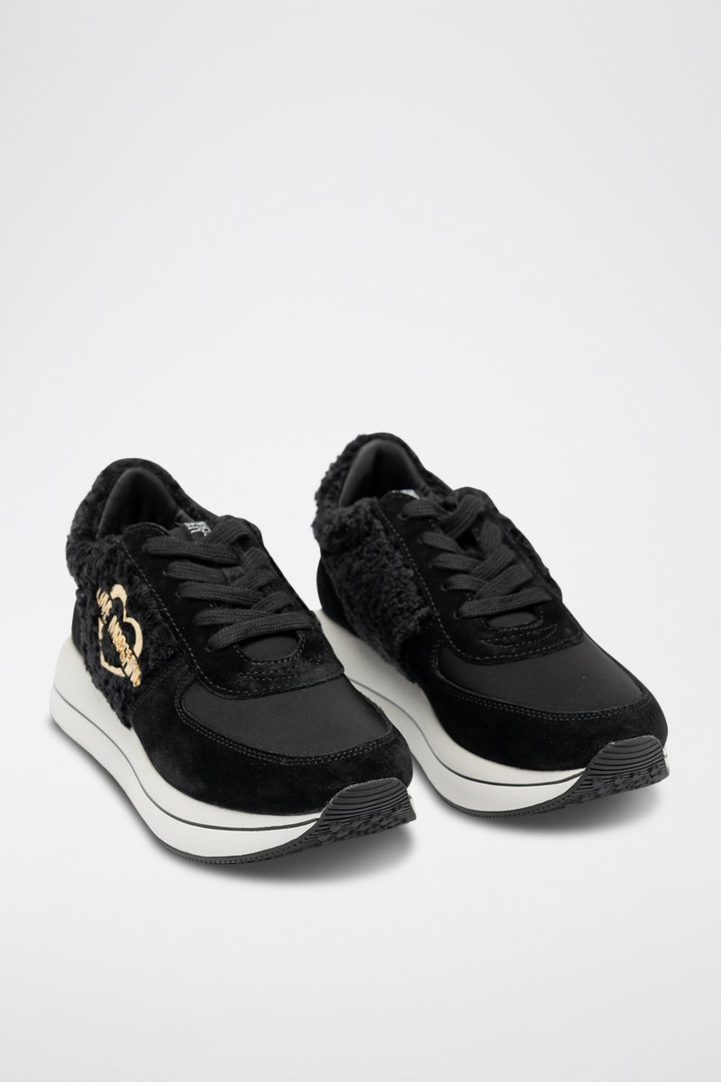 Sapatilhas com plataforma em couro - Preto