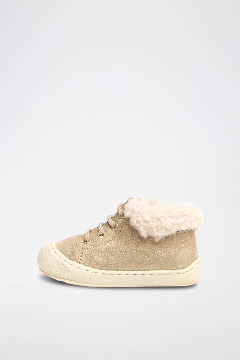 Sapatilhas forradas em nobuck - Bege e dourado