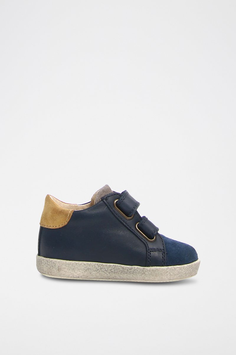 Sapatilhas subidas em nobuck e couro de vitelo.